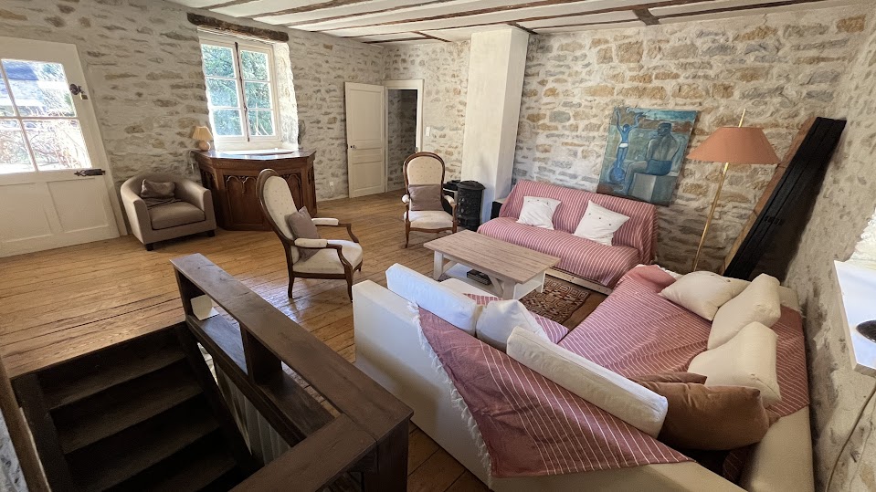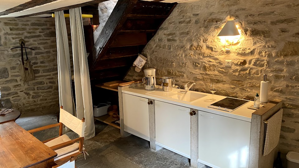 Un espace authentique avec ses magnifiques dalles de pierre ! Petite cuisine équipée et accès direct sur le jardin.
