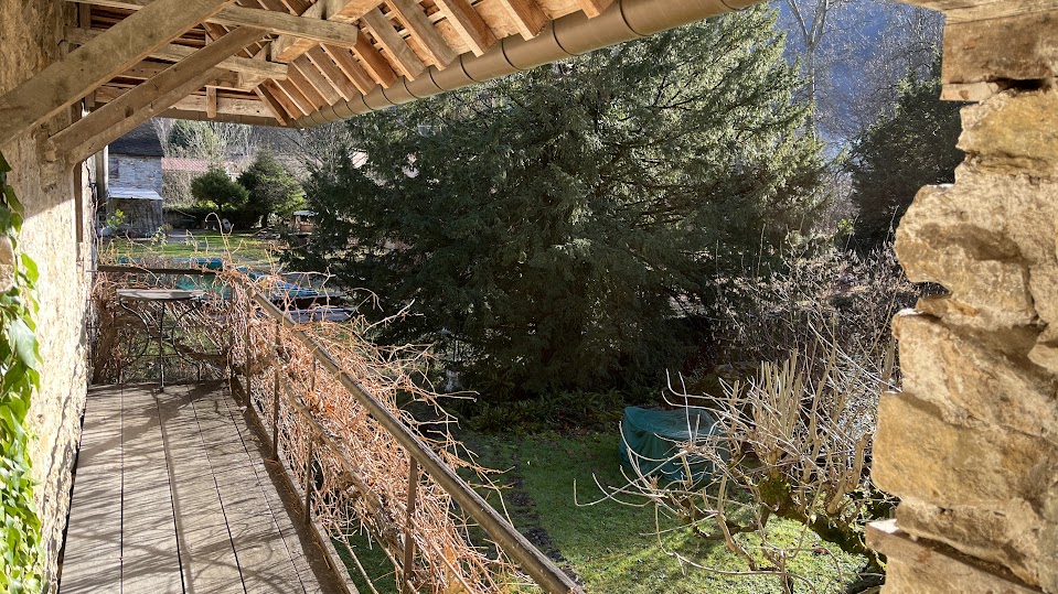 Un gite authentique sur deux niveaux, dalles de pierre au rez-de-chaussée, plancher à l’étage. Et un petit jardin au bord du ruisseau face à la falaise !